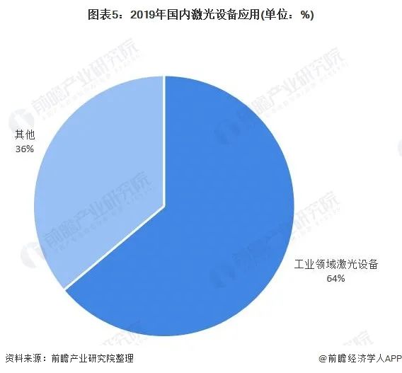 相對于全球激光設備應用領域,國內激光設別應用較為單一與集中,64%的比重應用于工業(yè)領域。