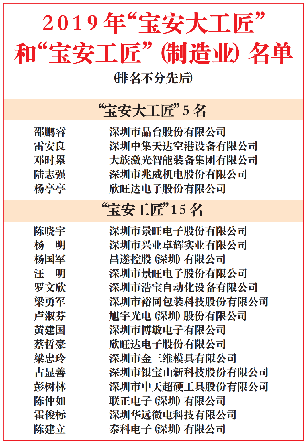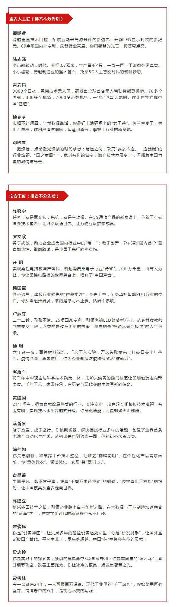 20名一線產(chǎn)業(yè)工人獲評(píng)“寶安工匠”(含5名“寶安大工匠”)