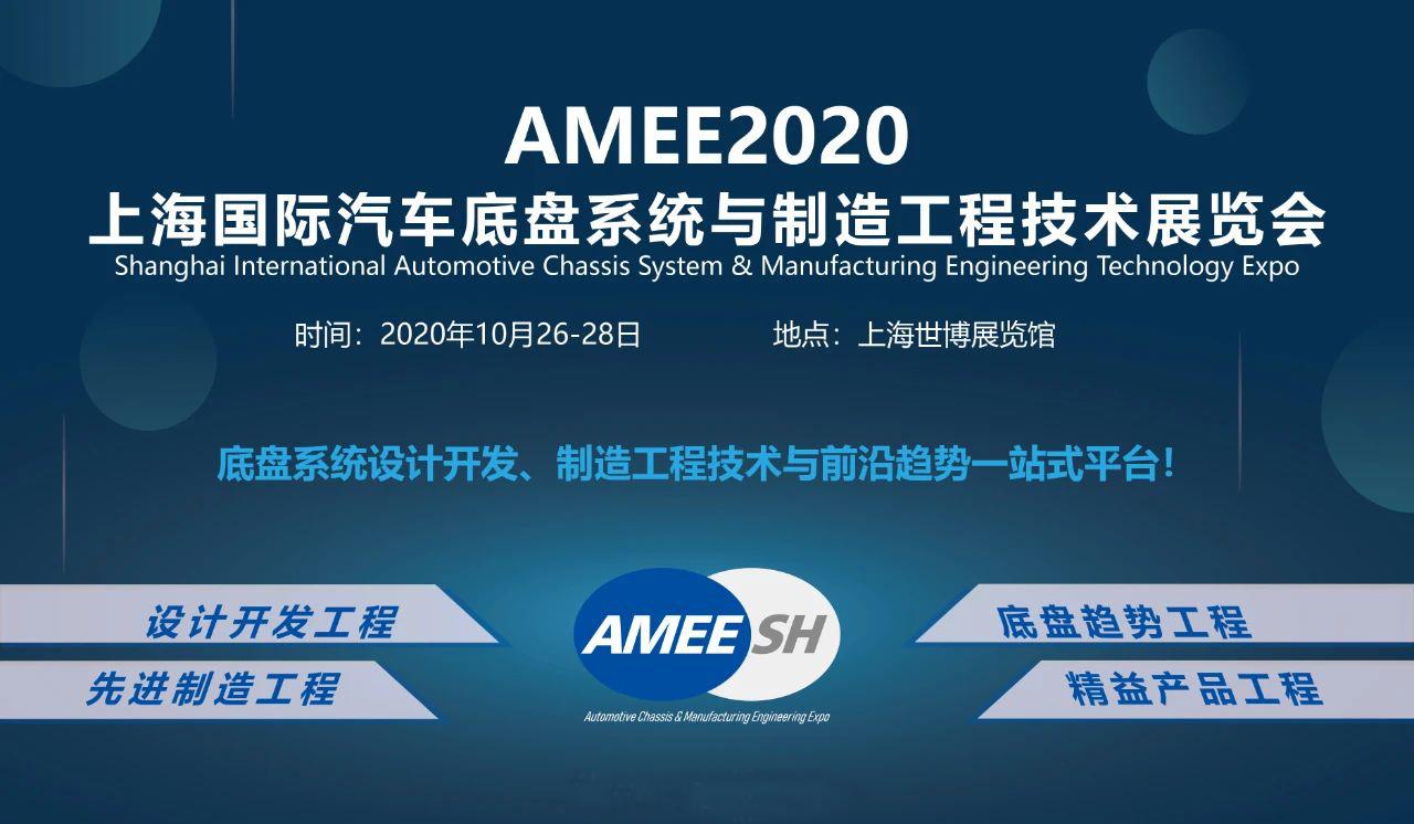 作為汽車行業唯一面向汽車底盤系統設計-開發-制造-工藝-質量-趨勢-產品工程領域的專業展覽會,AMEE2020上海國際汽車底盤系統與制造工程技術展覽會將于2020年10月26-28日在上海世博展覽館舉辦,歡迎汽車業內企業和嘉賓,參觀、參會、參展!