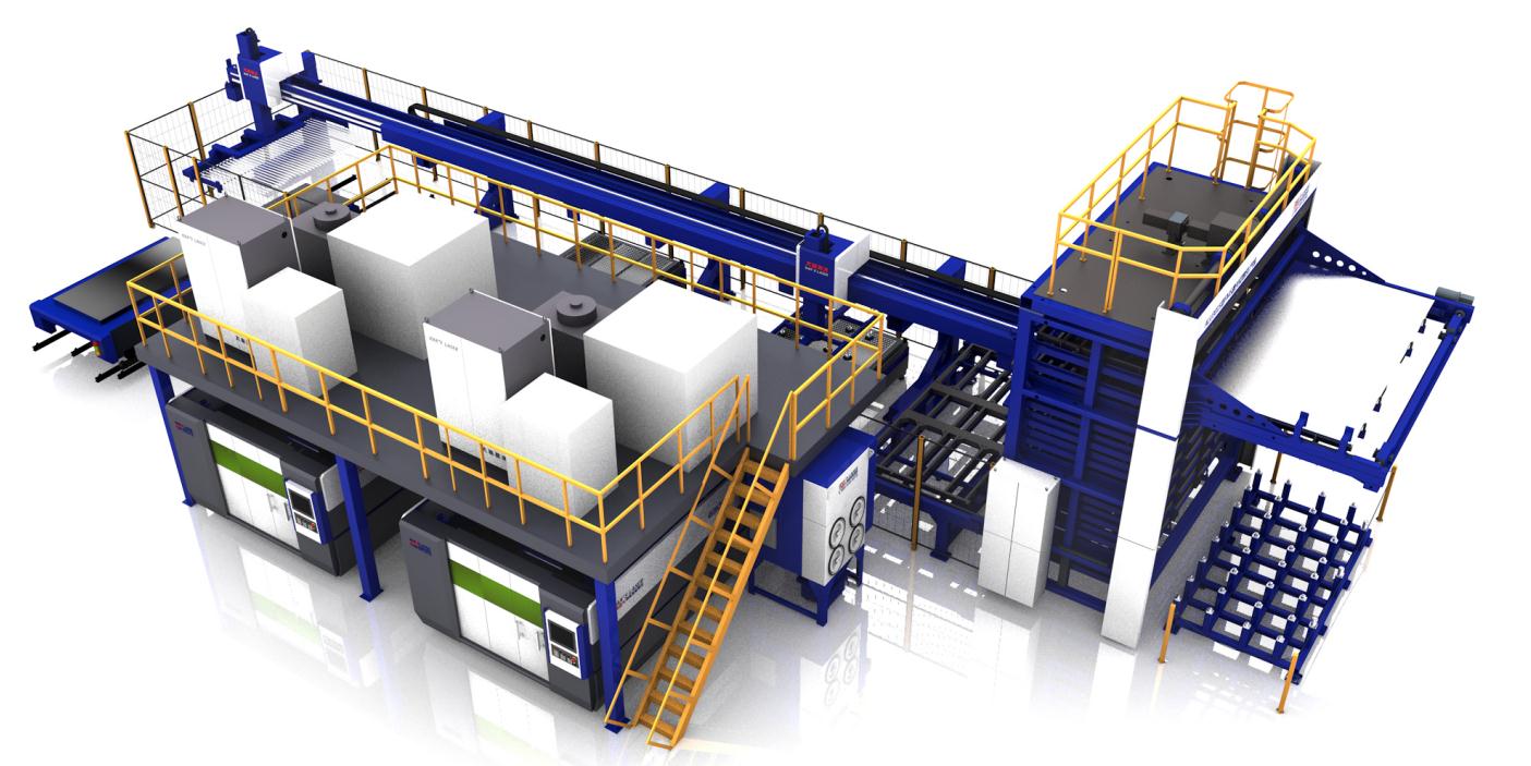激光切割機是一種新型、高效、高精度的金屬加工設備,在板材加工領域有著廣泛的用途。平面激光切割生產系統代表著快捷、精準與高效。大族激光根據企業智能化發展需求,研發出激光切割機的配套裝置---ALU系列自動上下料系統。單條ALU生產線最多可使五臺激光切割機連線生產。搭配多列料庫,更可將多條生產線“組團”生產,形成大型的激光切割柔性生產集群,實現20mm以內中、厚板材的自動上料、下料、分揀。
