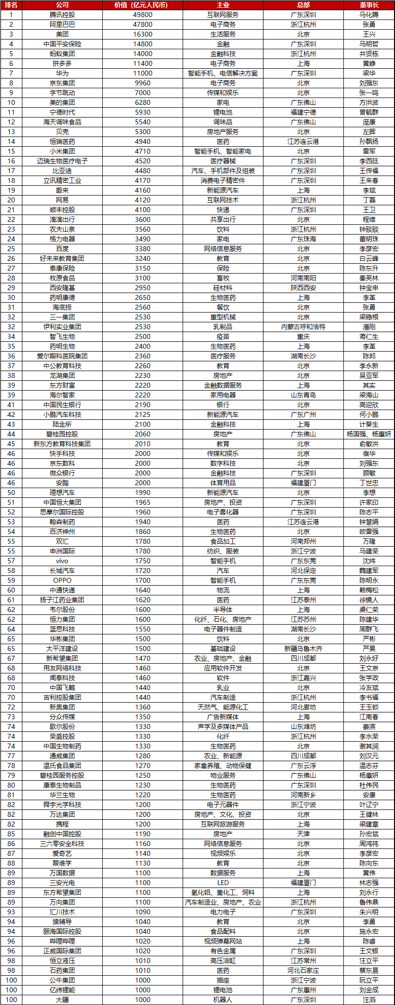 11月25日,胡潤研究院最新發(fā)布了《胡潤中國500強(qiáng)民營企業(yè)》,公布了2020年中國排名靠前的500強(qiáng)民營企業(yè)。據(jù)胡潤研究院透露,本年胡潤500強(qiáng)榜單的上榜門檻為230億元,相比較去年提高了90億元,即64%。本次上榜企業(yè)的總價值共為56萬億元,相比去年增加了20萬億元,相當(dāng)于去年中國GDP的近六成;企業(yè)的平均市值更是達(dá)到1100億元,相比較去年增長了390億元,年增長55%,創(chuàng)歷史新高。
