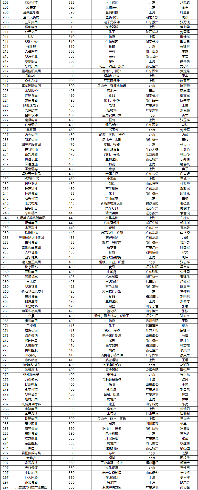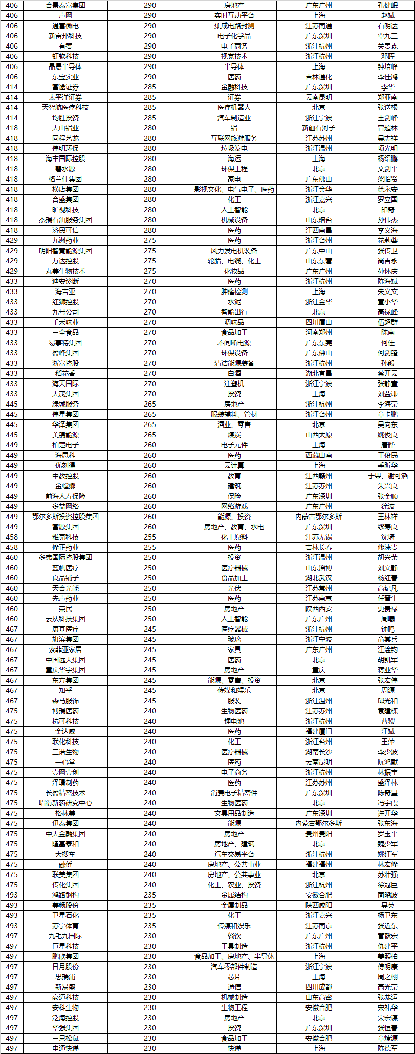 500強(qiáng)民營企業(yè)去年銷售額總和22萬億元,是去年中國GDP的五分之一,超過英國一年的GDP;共擁有員工970萬人。胡潤表示:“要上中國500強(qiáng)榜單并不容易,今年門檻比去年高了90億元,達(dá)到230億元,但仍然有120家企業(yè)新上榜,500強(qiáng)的平均價值比去年增長了55%,達(dá)到1100億元。上榜企業(yè)在各個領(lǐng)域已經(jīng)達(dá)到世界級。”