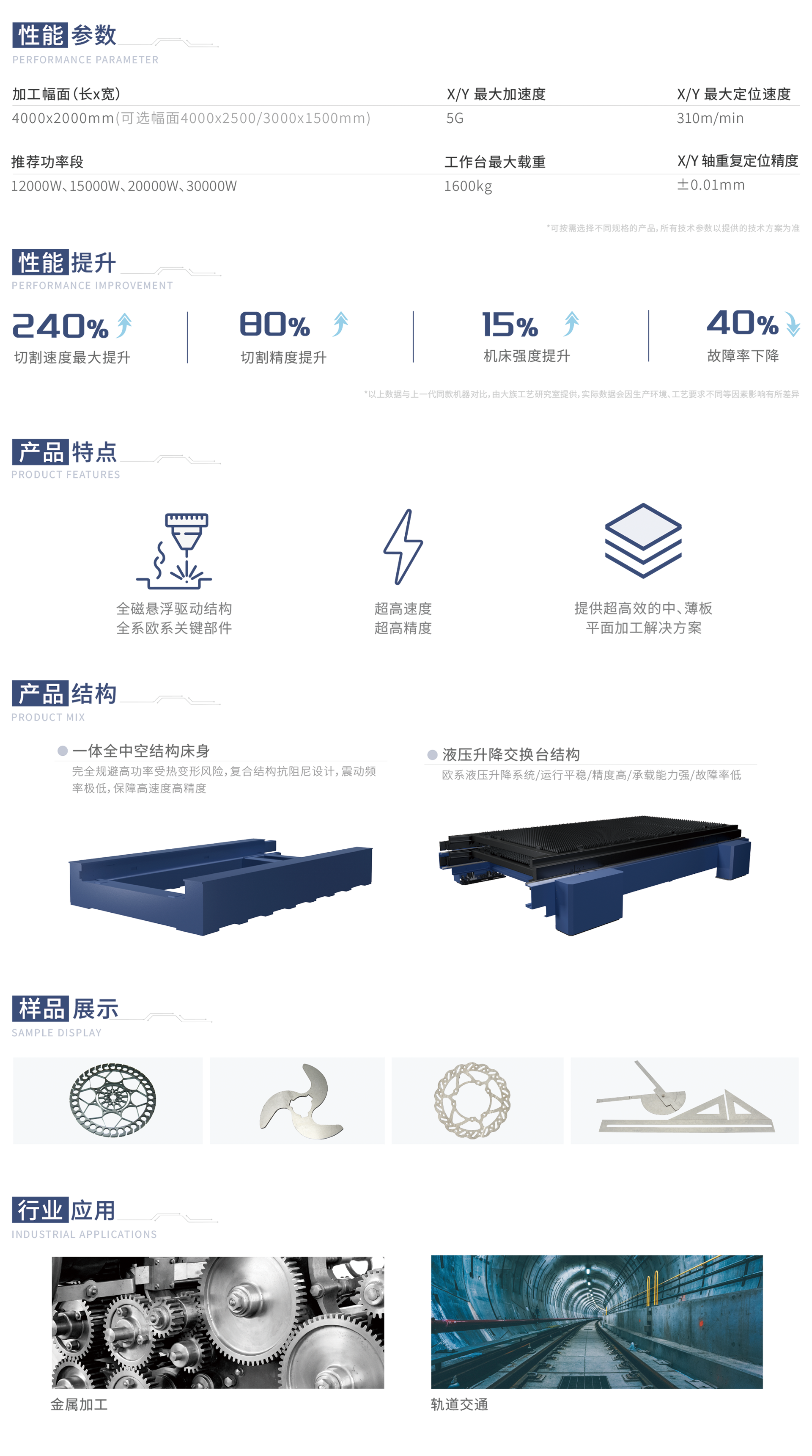 HF系列光纖激光切割機最大程度地發揮數千瓦乃至上萬瓦光纖激光器的切割速度,為您提供最高效的薄、中、厚板加工解決方案。