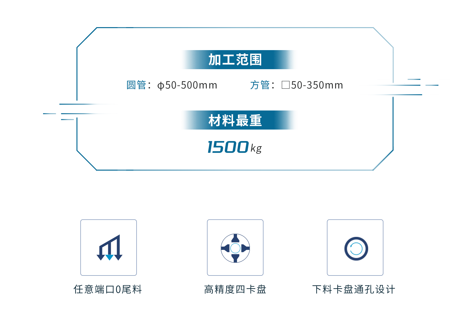 四卡盤同軸夾管,管材夾持端離切割頭更近,