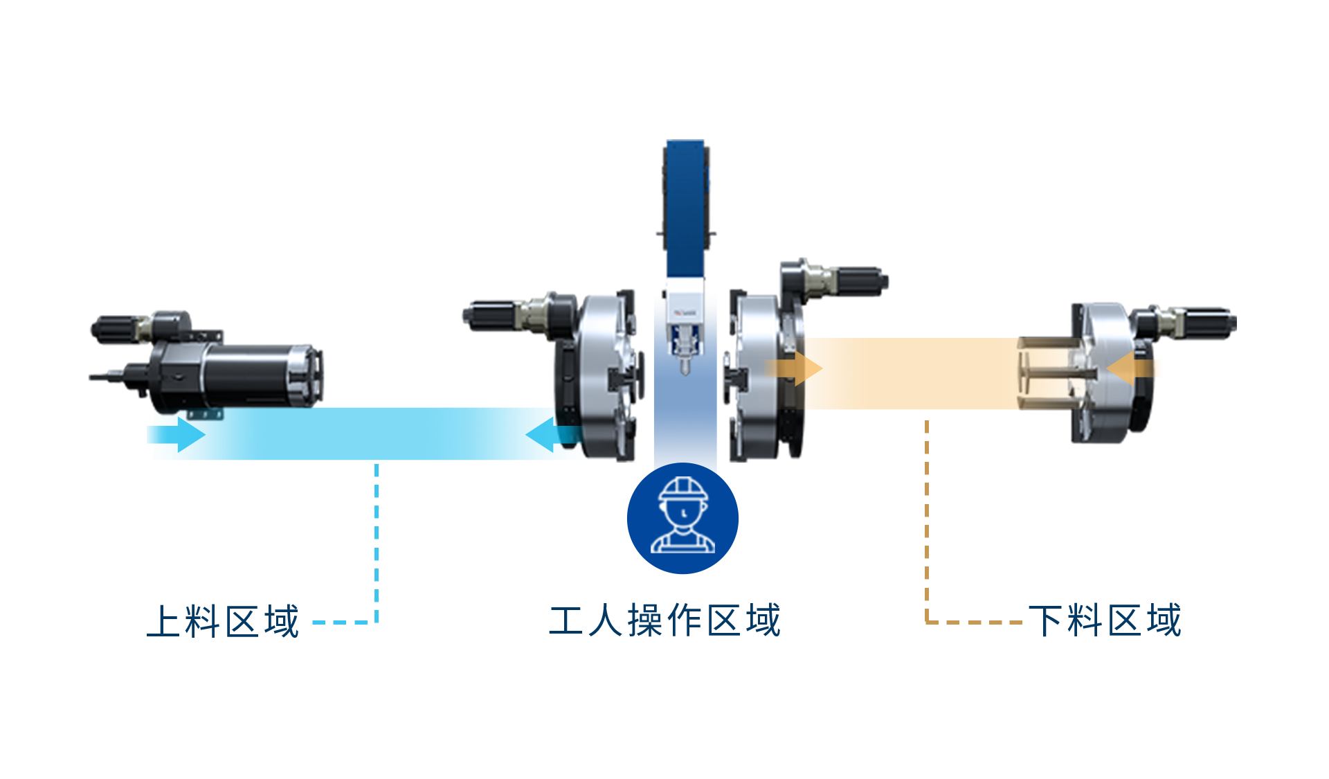 兩卡盤夾持下料,可在行程范圍內任意區域下料,